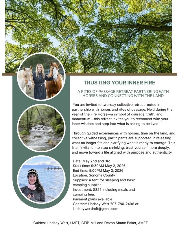 We are excited to announce this integrative two-day program weaving partnership with horses and rites of passage. This gathering invites you to claim your inner fire—individually and collectively—as we step fully into spring and meet the world as it is. We are living in a time shaped by ecological crisis, war, devastation, illness, and deepening separateness. In response, we are called to gather—to draw upon our gifts, strengths, and shared wisdom—and to ground ourselves in what is truly needed now.